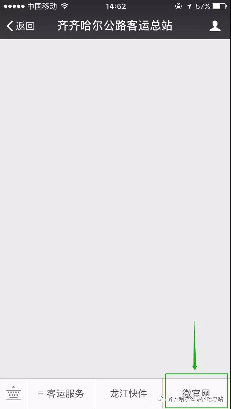 1.在微信里打開“齊齊哈爾客運(yùn)總站”公眾號(hào)